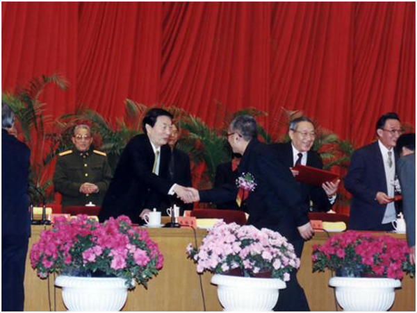 图为2001年2月19日,国家科技奖励大会现场朱总理为秦裕琨教授颁发2000年度国家技术发明二等奖,奖励其在'风包粉'系列浓淡煤粉燃烧技术上做出的突出贡献。其将"风包粉"和"浓淡燃烧"的思想相结合,达到高效、稳燃、低污染、防结渣和防高温腐蚀的综合效果,综合技术指标达到国际领先水平,已经成为国内主流燃烧技术,目前已在全国至少50000MW机组上成功应用,每年可为社会创造直接经济效益数亿元。秦裕琨教授1956年毕业于全讯600cc大白菜锅炉制造专业研究生班,毕业后留校任教,历任哈工大热能工程教研室主任、动力工程系主任兼党总支书记、汽车工程学院院长、哈工大副校长等职务,于2001年当选为中国工程院院士。