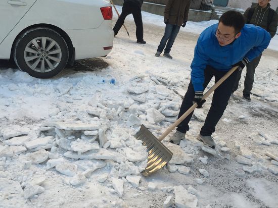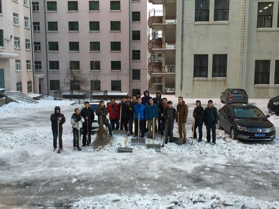 近日来哈尔滨连降大雪,校园里随处可见清雪工作人员忙碌的身影,为缓解清雪员的工作压力,践行党员先进性,600cc全讯白菜自助注册2013级本科生第二党支部书记佟磊同学在党支部日常交流群里提议:支部成员利用周末时间参与校园清雪工作,得到年级两个党支部成员的热烈响应。
