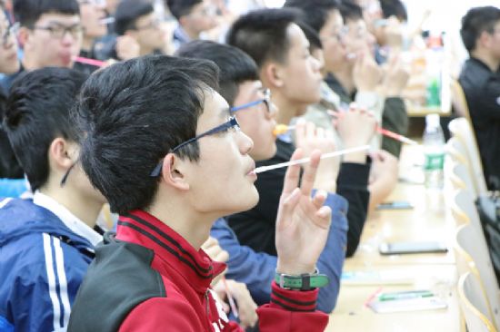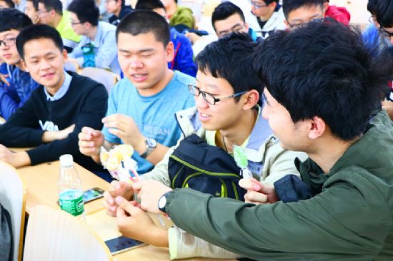 (图 /朱翰林,文/王田)眼盼着五一,又到了周四。在基础学部五四联评中刚刚脱颖而出的1602003和1602006两个团支部经过商议,决定给全年级发喜糖。4月13日下午正在二区主楼B31欢庆时,五位大四学长的到来,为同学们的初夏增添了一抹新绿,是青春,是希望,是一段段动人的成长故事。来自2013级航天学院、电信学院、600cc全讯白菜自助注册和经管学院的青年在他们的本科毕业前夕,共同为2016级600cc全讯白菜自助注册全体同学讲述了关于如何保研、找工作、申请出国的那些过往。