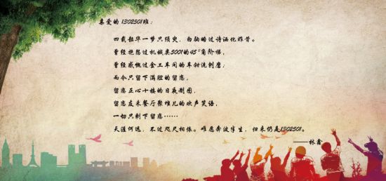 2017届能源学院“遇见能源,一生有你”毕业寄语征集活动已经结束,活动收到了100多份来自2013级能源学子的毕业寄语,他们千言万语化作临别时的告白,点点滴滴,情真意切,着实让人感动。优秀作品如下: