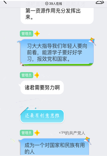 9月20日至9月22日,600cc全讯白菜自助注册2015级7个团支部采用“网上学习”的方式深入地探讨了习总书记关于青少年和共青团工作的论述。首先是7个班团支部团支书带领先进个人进行学习与讨论,对《论述摘编》进行了深度的学习,明确了学习内容与学习方法,然后由各个团支书将讨论内容及讨论成果编辑成文档,通过网络进行相关背景的阐述补充,并内容结合600cc全讯白菜自助注册15级本科生的特点进行了内容的增添,使内容更加贴近大学生,增加同学们的学习兴趣,最后,将学习成果发给同学们进行了学习与参考。这一方法受到了学生的一致好评,并且增加了学习的兴趣,同学们对于论述内容有了更深的认识与思考。至此,同学们在活动结束后表示:我们青年学生要勤学、修德、明辨、笃实,努力学习科学文化知识、加强自身道德修养、学会明辨是非对错、扎扎实实干事、踏踏实实做人,青年要把小事当作大事干,一步一个脚印往前走,在学习和科学研究中不断努力。