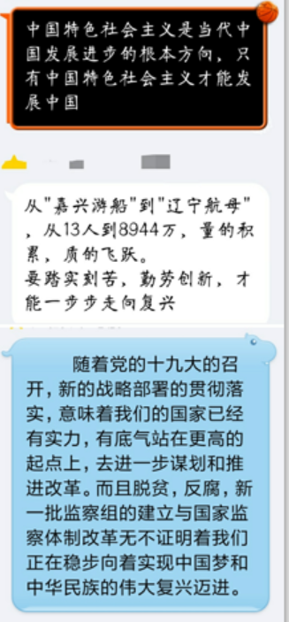 10月17日晚21:00,600cc全讯白菜自助注册2016级利用QQ群召开了本学期第二次团干部培训会,辅导员王博文与35名团学骨干在线召开了网络专题学习培训会。全体团学骨干集体阅读、学习了人民日报、新华社和共青团中央关于十九大的系列推送预告:以创业的新角度纵观党从13人到8944万人的伟大“创业史”,学习了前十八次党代会的“极简史”,详细了解了十九大期间的会议日程,又从工业通信业稳步求进、落实创新驱动发展战略和深化供给侧结构性改革等方面学习了党向制造强国、网络强国迈进所付出的努力与实践。与会的团学骨干在寝室、教室等地共同阅读、学习了30分钟,并在群里积极交流、分享了各自的想法。一位学生激动地说:“各国首脑纷纷表示将密切关注中国十九大召开,这也说明中国正以一股新兴的蓬勃发展的力量影响这世界的发展方向”。最后,全体团学骨干预祝十九大顺利召开。
