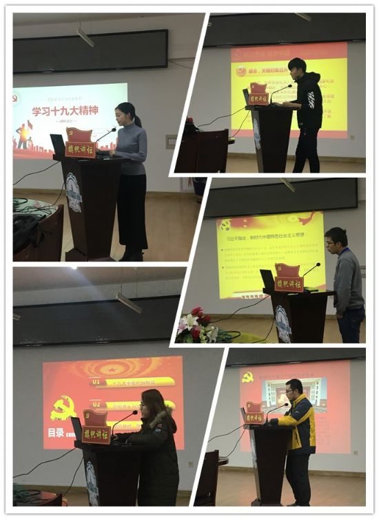 首先党支部书记张文文带领支部党员们讨论十九大的热点词汇,包括大会的主题“不忘初心,牢记使命”八个字,党员们积极踊跃地参与讨论,纷纷表明自己加入中国共产党的初心,并表示会在以后的学习生活中牢记自己身为共产党人的光荣使命,不断追随党的领导。接着五位积极分子围绕主题进行了精彩的演讲。柴永浩同学认为十九大是一场盛会,在关键时期召开,描绘了中国未来,经过长期努力,中国特色社会主义进入了新时代,这是我国发展新的历史方位,必将影响世界走势;苗宇芯同学向大家介绍了关于十九大的基本知识,她提到习总书记告诫全党要永远保持建党时中国共产党人的奋斗精神,永远保持对人民的赤子之心,引用了姜太公的“见善而怠,时至而疑,知非而处,此三者,道之所止也”,以此来告诫我们要保持住初心;胡彦孜同学对十九大报告内容进行了全面的解读,她提到作为青年一代,要有理想、有本领、有担当,为中国梦的实现努力奋斗;王奥同学带领我们重温了中国特色社会主义理论体系的马克思列宁主义、毛泽东思想、邓小平理论、“三个代表”重要思想和科学发展观,告诉党员们要在学习新的精神时不忘对这些实践经验和集体智慧的结晶进行继承和发扬;张国华同学以“新时代、新征程、新思想”为题,向党员们介绍了习近平新时代中国特色社会主义思想的主要内容,特别指出习近平新时代中国特色社会主义思想是对马克思列宁主义、毛泽东思想、邓小平理论、“三个代表”重要思想、科学发展观的继承和发展,是马克思主义中国化最新成果,是党和人民实践经验和集体智慧的结晶,是中国特色社会主义理论体系的重要组成部分。