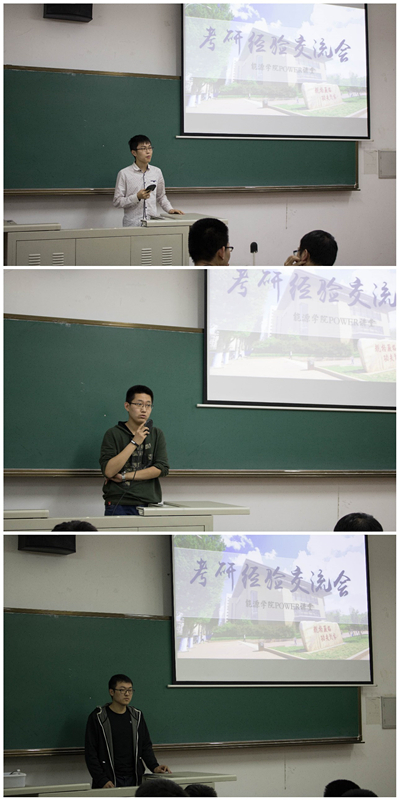 4月21日晚,由600cc全讯白菜自助注册POWER讲堂举办的“研途分享”之考研经验交流会在正心109室举办。本次交流会邀请了600cc全讯白菜自助注册2014级本科生吕游、刘越奇、张楠三名考研成绩优秀的学长担任主讲嘉宾,15级学生干事刘忠闪主持。