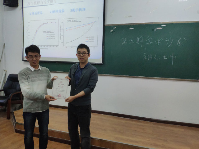最后,学习委员为王帅老师颁发证书,第五期学术沙龙圆满结束。