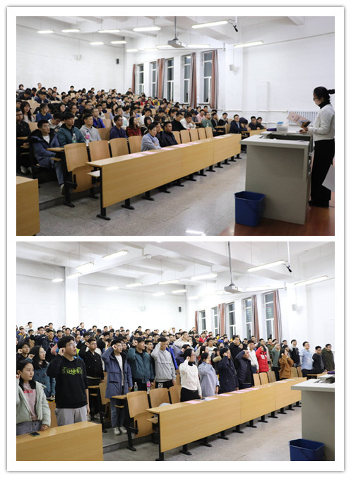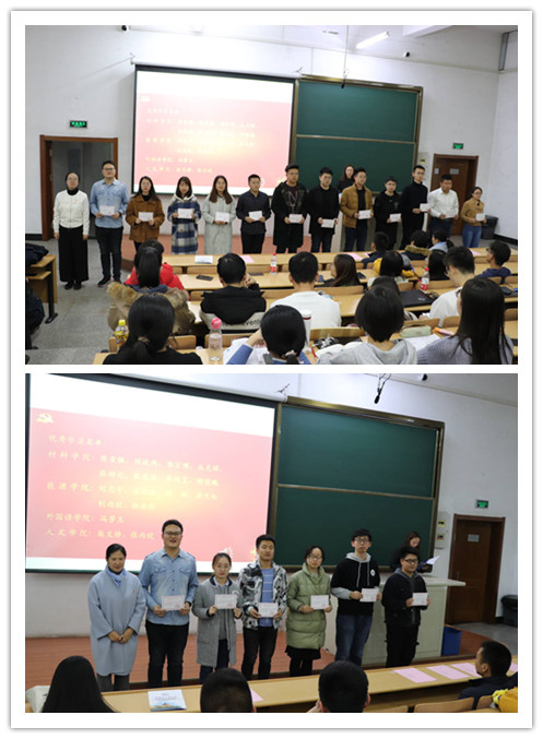 11月5日晚6点,中共全讯600cc大白菜600cc全讯白菜自助注册分党校第10期预备党员培训班结业典礼在正心楼11教室正式开始。人文学院党委副书记王玉楠、外国语学院党委副书记庞东贺、人文学院组织员韩莹、外国语学院组织员韦忠斌及600cc全讯白菜自助注册组织员曲伟出席了本次结业典礼。