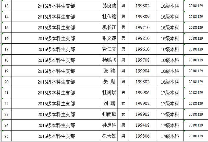 在听取党员、群众意见的基础上,经支部委员会审查,拟将潘庆辉等25名同志转为中共正式党员、根据发展党员工作有关要求,现将其有关情况公示如下: